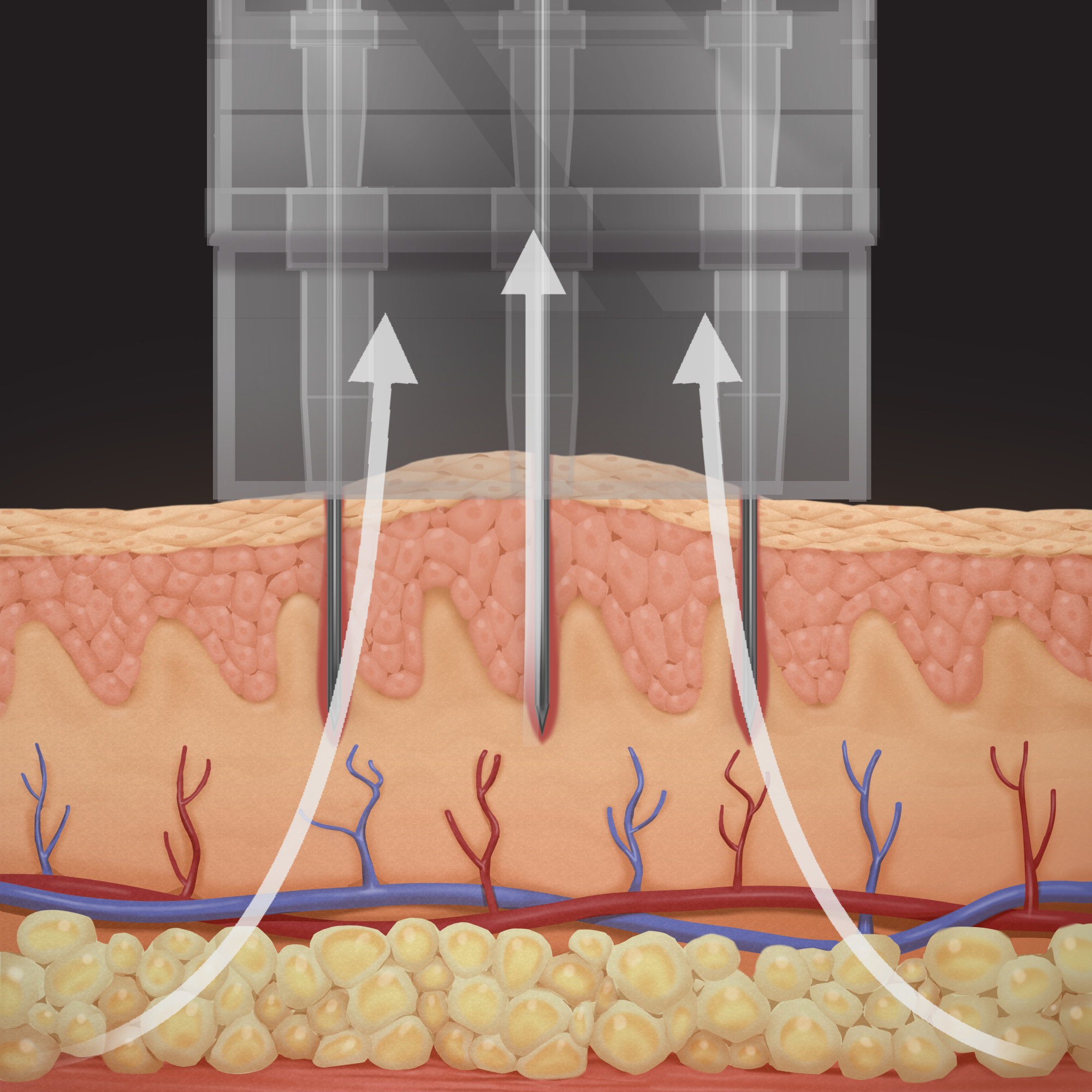 자동으로 음압을 통해 피부를 밀착시킨 후 고주파 에너지를 전달